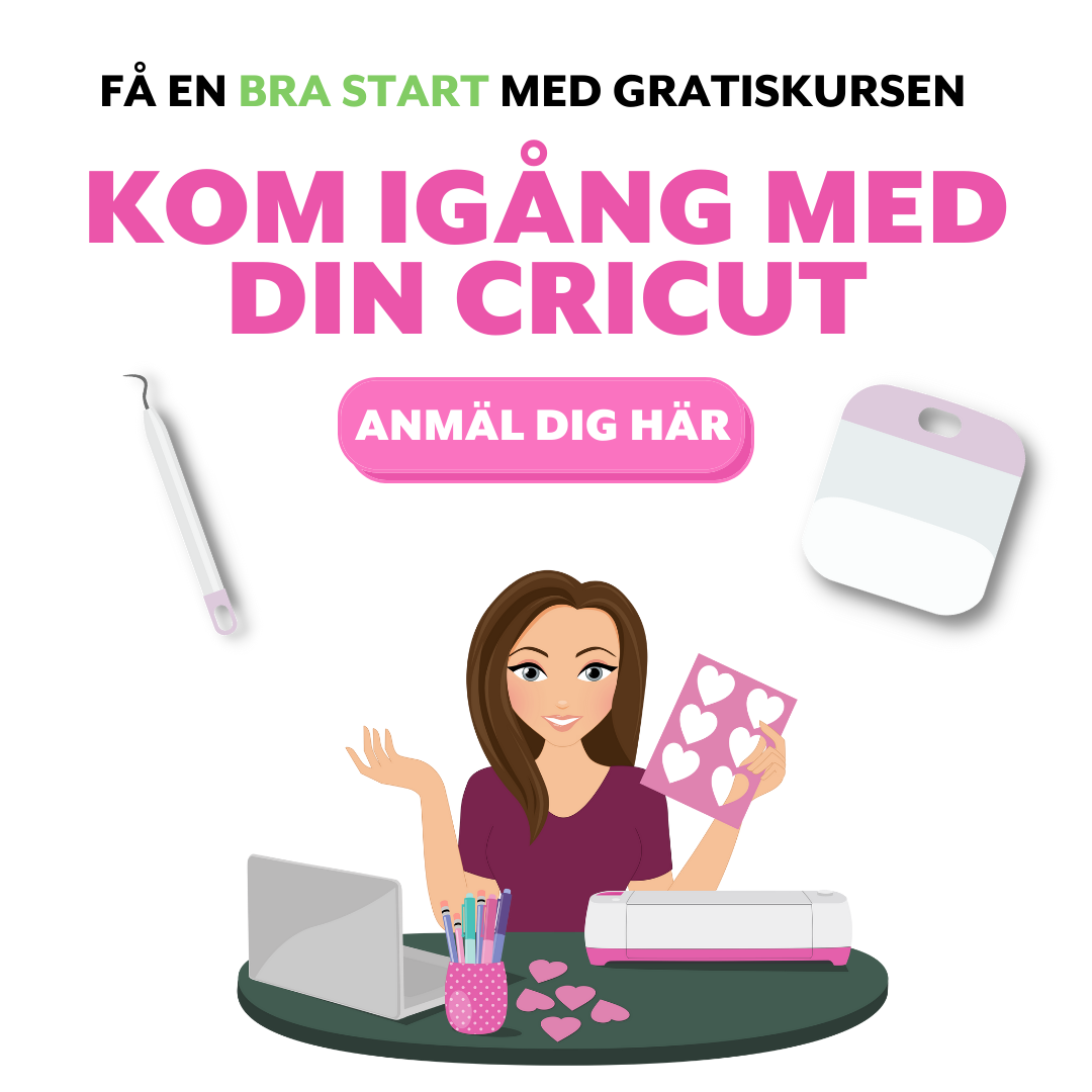 Kom igång med din Cricut är en gratis onlinekurs som hjälper dig att få en bra start med din Cricut. När du anmäler dig till kursen så får du: